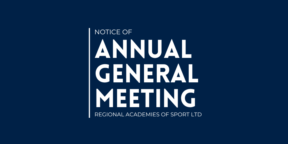 Regional Academies of Sport Ltd Notice is given that the Annual General Meeting (AGM) of the Regional Academies of Sport Ltd will be held as follows: Date: Tuesday, 27th May 2025 Time: 10am Location: To be held online via ZOOM RSVP: To emily@regionalacademies.org.au to receive the ZOOM link